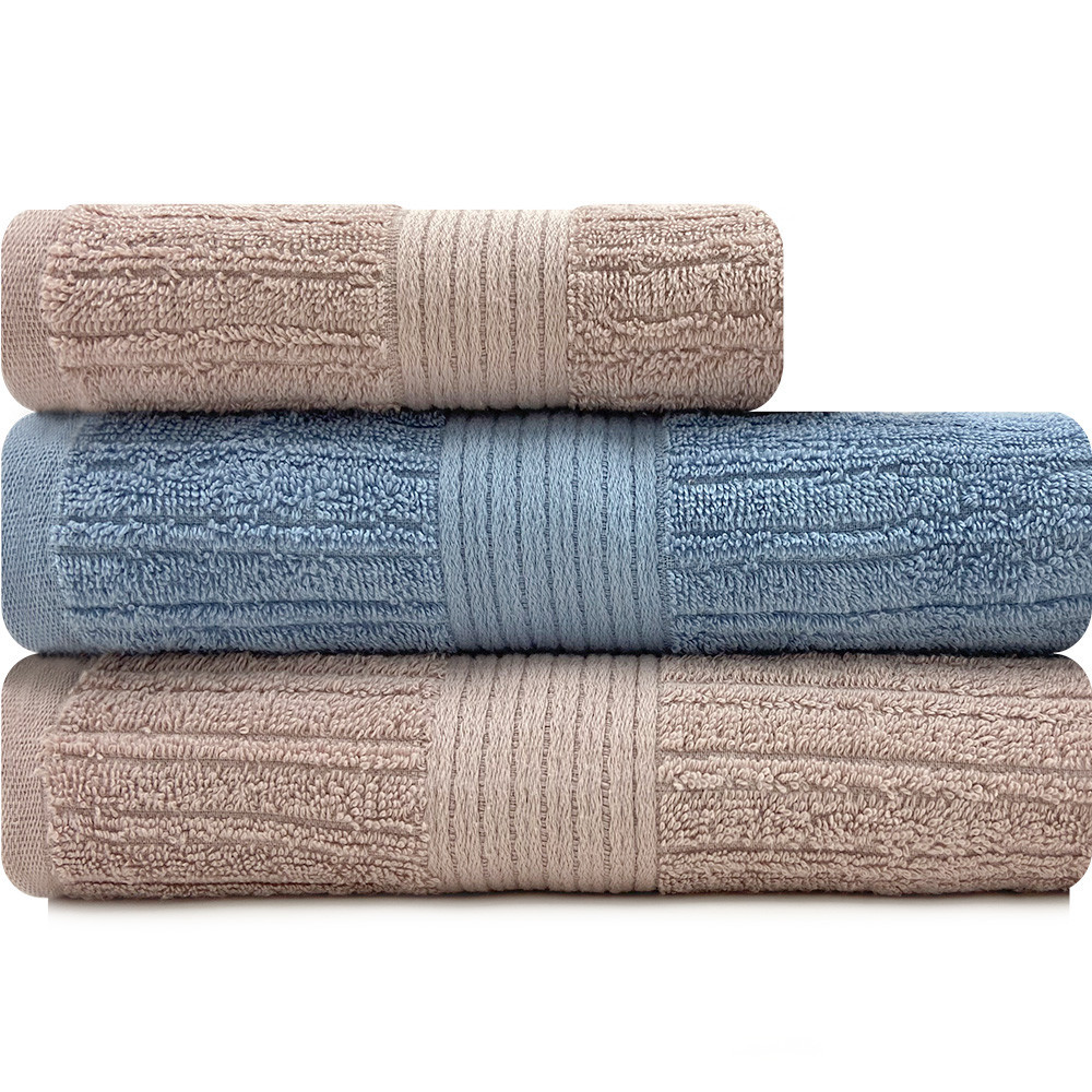 Jogo de Toalha Fio Penteado Canelado Algodão 3 Peças Banho e Rosto Buddemeyer