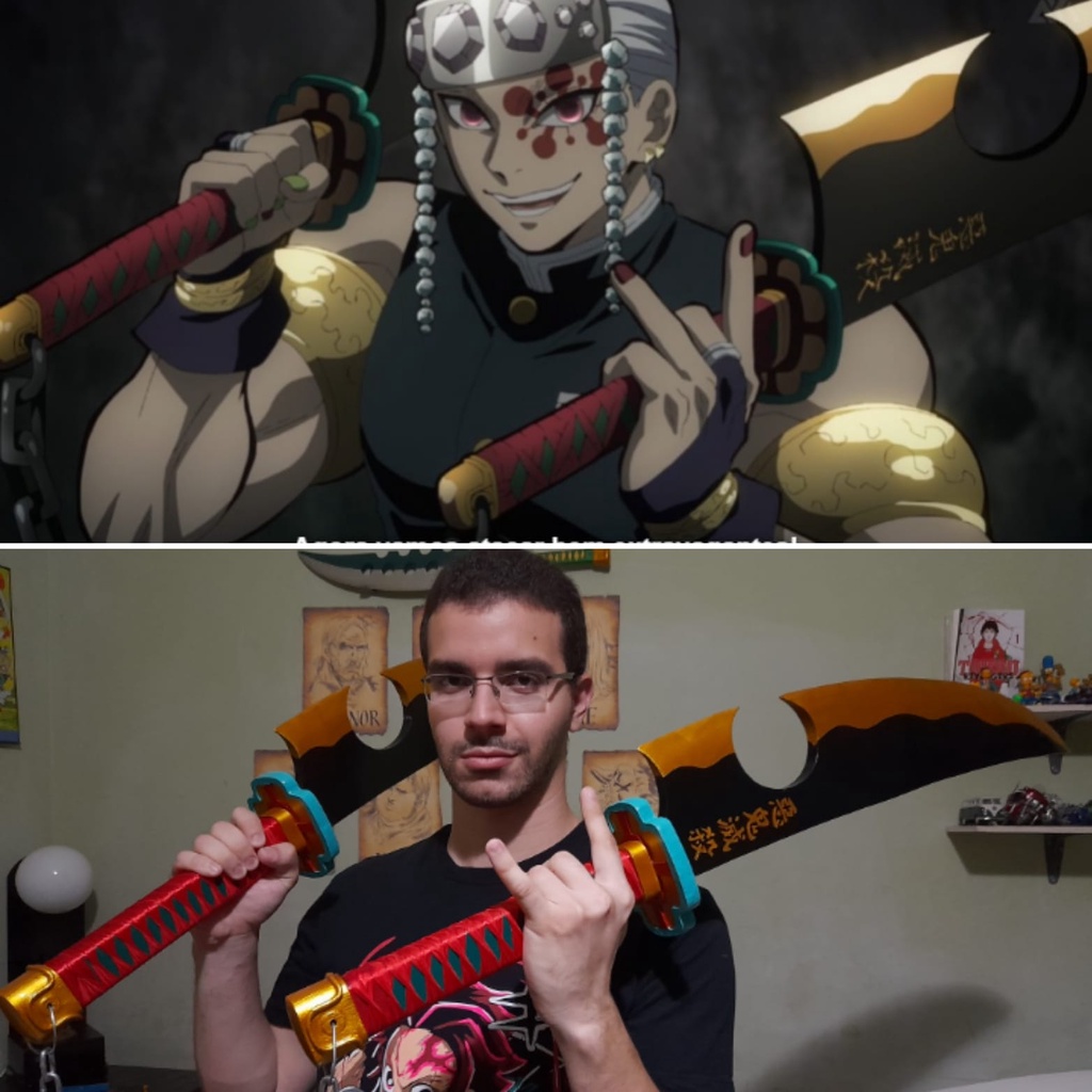Espada do Uzui Tengen tamanho real Kimetsu no Yaiba Demon slayer com capa (Espada feita de Madeira)