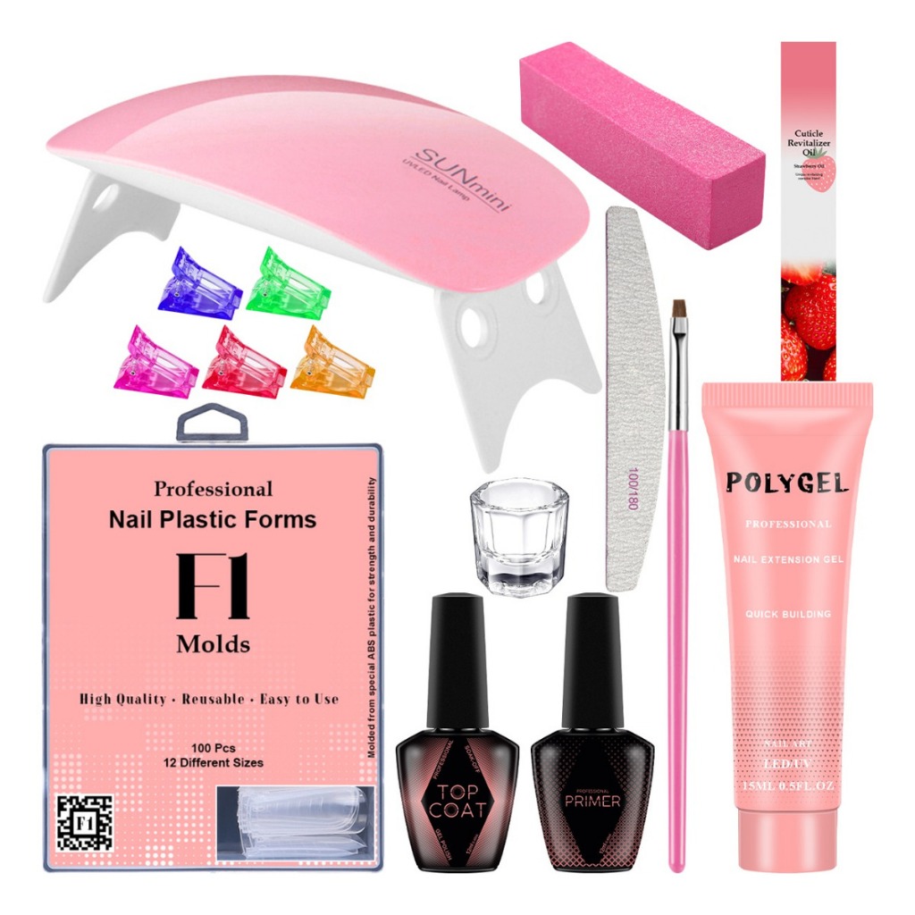 Kit Polygel Alongamento De Unha + Molde F1 + Lixa + Top Coat + Primer + Cabine Sun Mini Poligel Alongamento Unhas Poly Gel