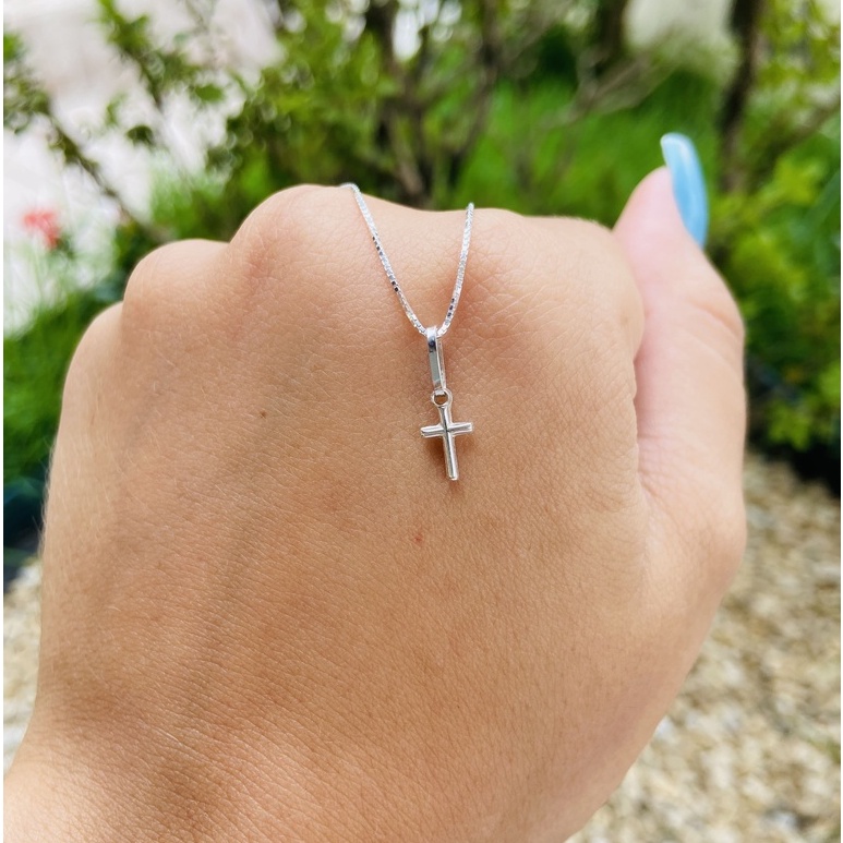 Colar Prata 925 Pingente Cruz Mini Corrente 40cm Prata Legítima