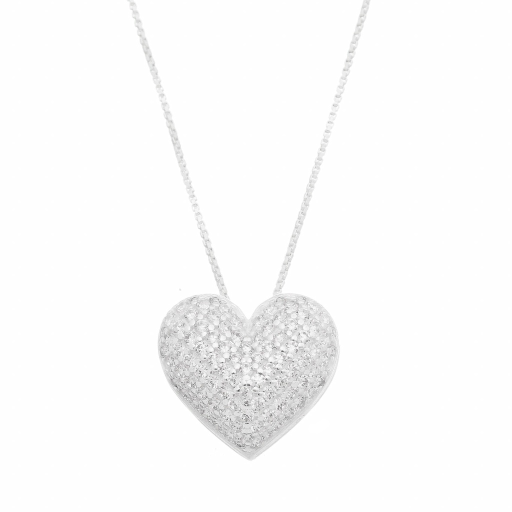 Colar de Prata 925 e Pingente coração com zirconia Cravejada com garantia