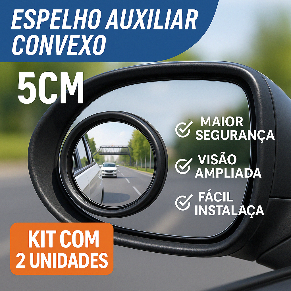 Kit 2 Espelho Retrovisor Auxiliar Convexo 5cm Universal Carro Moto Visão Panorâmica Anti Ponto Cego