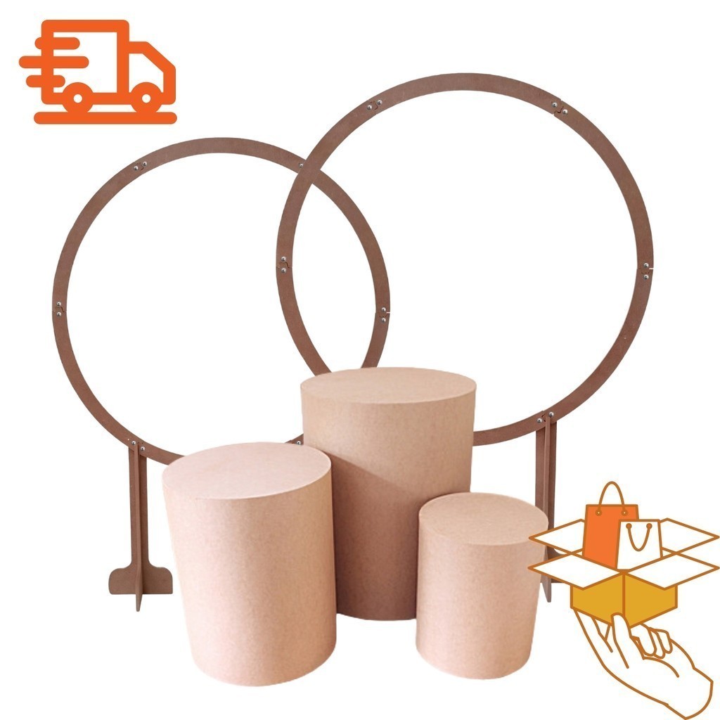 Conjunto Para Festa Mdf Cru Trio de Cilindro e Painel Redondo Pequeno
