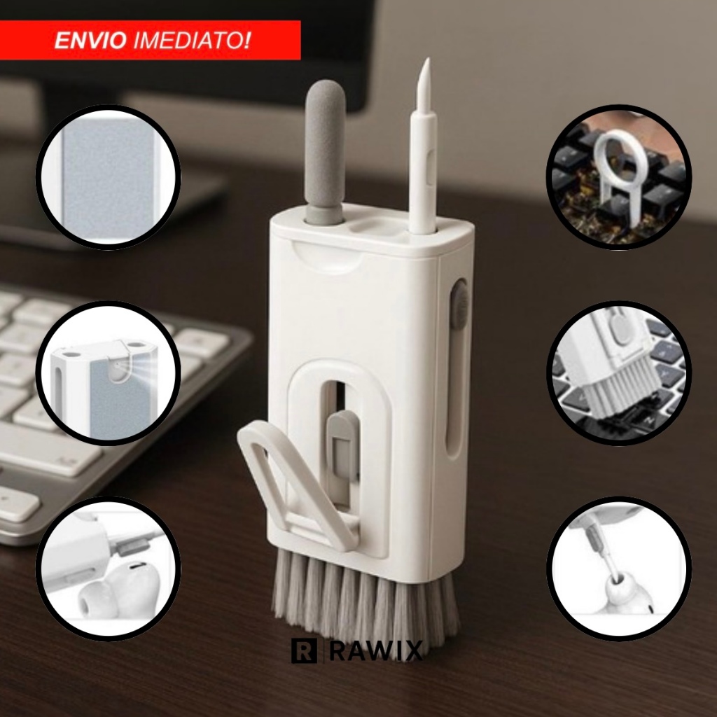 Kit Limpeza Higienizador Teclado Computador Escova 7 em 1 Portátil Tira Poeira Notebook Celular Fone Ouvido