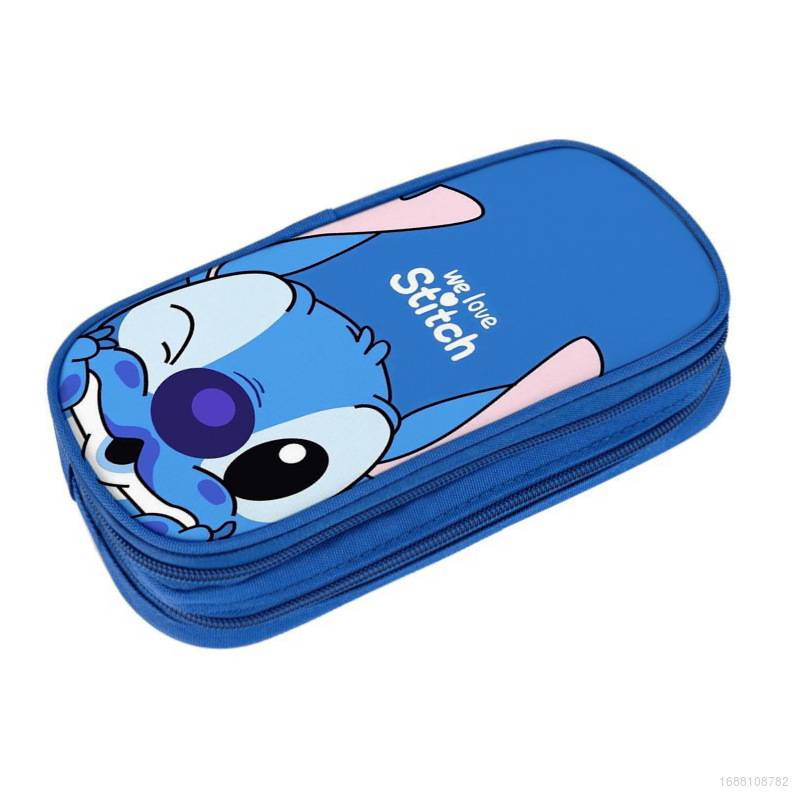 COOL Stitch Estojo De Lápis Cartoon Anime Camada Dupla Multi Funcional De Estudante Caixa De Papelaria Grande Capacit