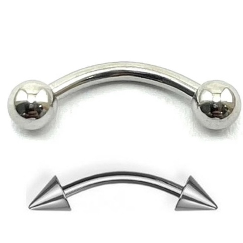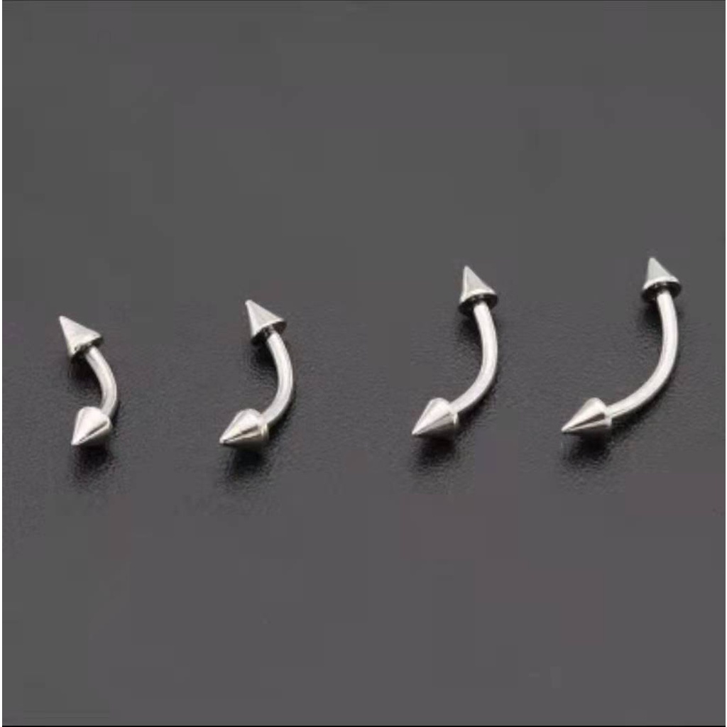 Piercing Microbell CURVO SPIKE PRATA vertical labret sobrancelha - Aço Cirúrgico