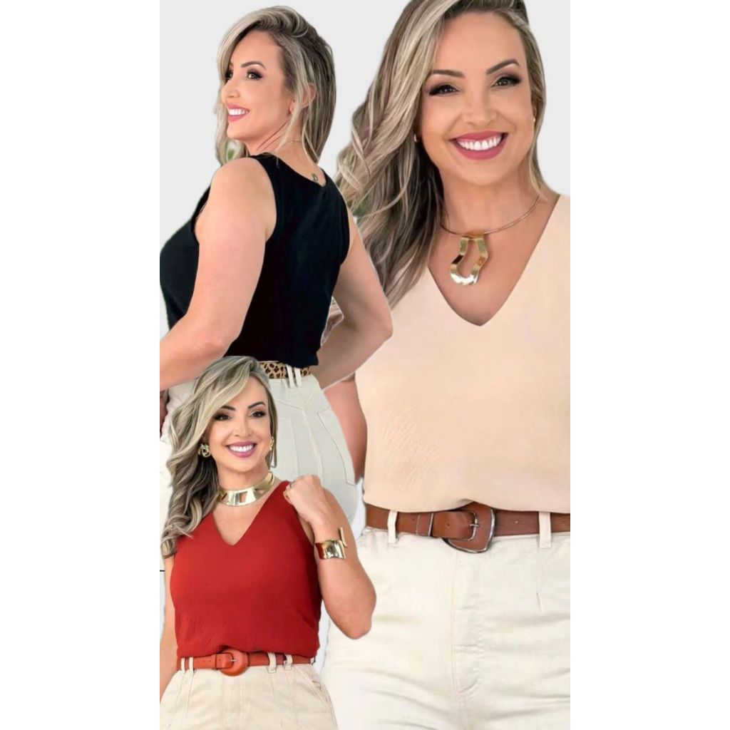 Blusa Feminina Social Regata Alça Larga Alfaiataria Tendência Moda !!