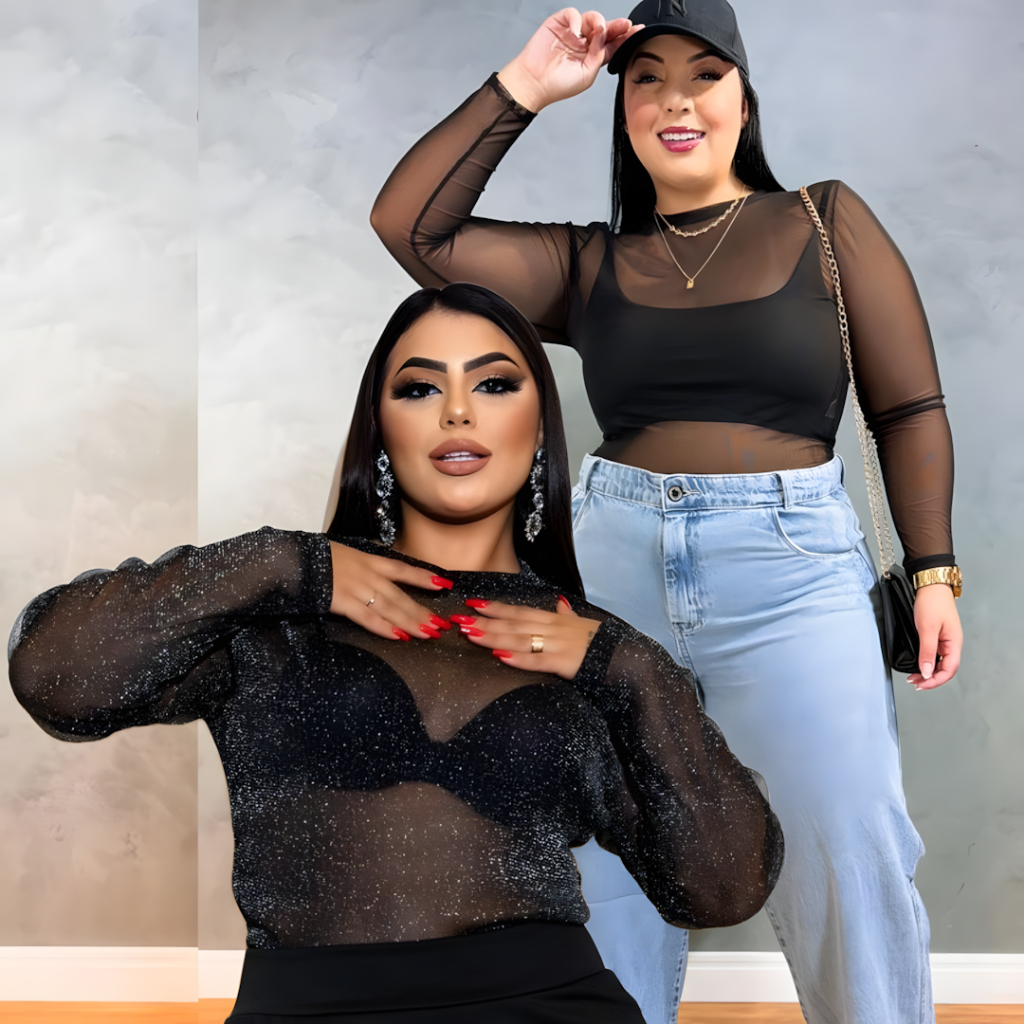 Kit 2 Body Plus Size Transparente De Tule Brilho Festa Balada