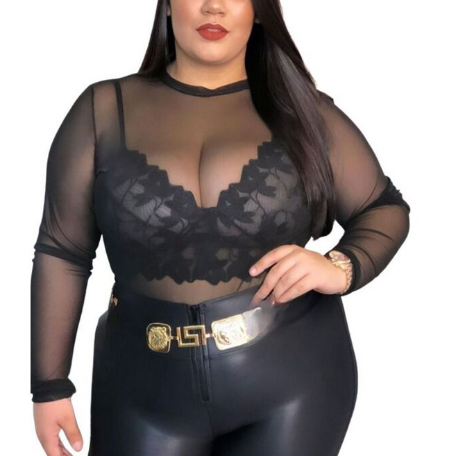 Body Transparente Plus Size De Tule Manga Longa Balada