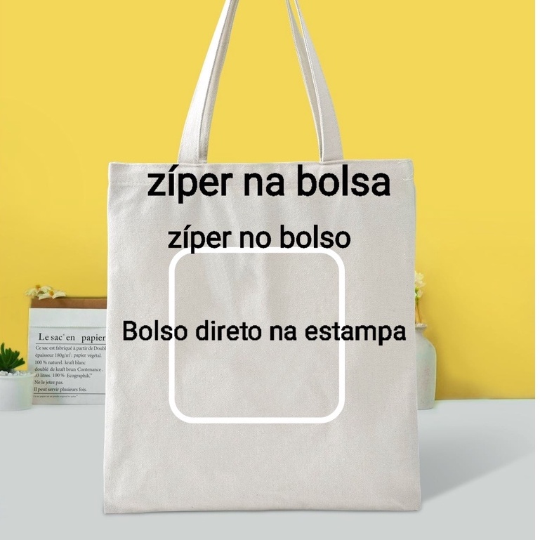 Bolsa personalizada Sacola Ecobag Com Ziper e Bolso Direto Na Estampa Com Zíper