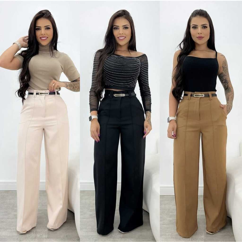Calça Social Feminina ZARA Pantalona Alfaiataria Com Cinto Lançamento Moda Zr Luxo Elegancia Eloquencia Moda Social