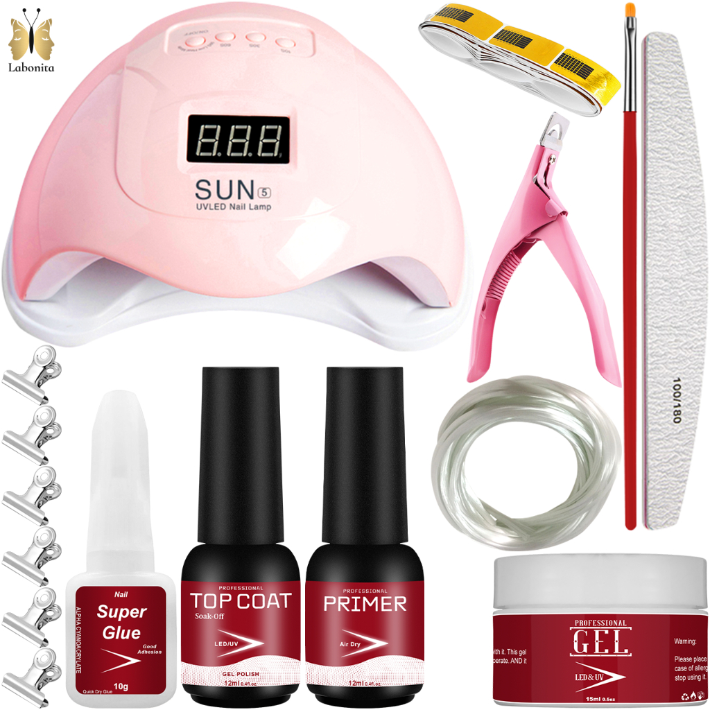 Kit Unha Gel Completo Cabine Sun 5 48W Digital Lixadeira Elétrica Caneta Pedicure e Manicure Alongamento De Unhas