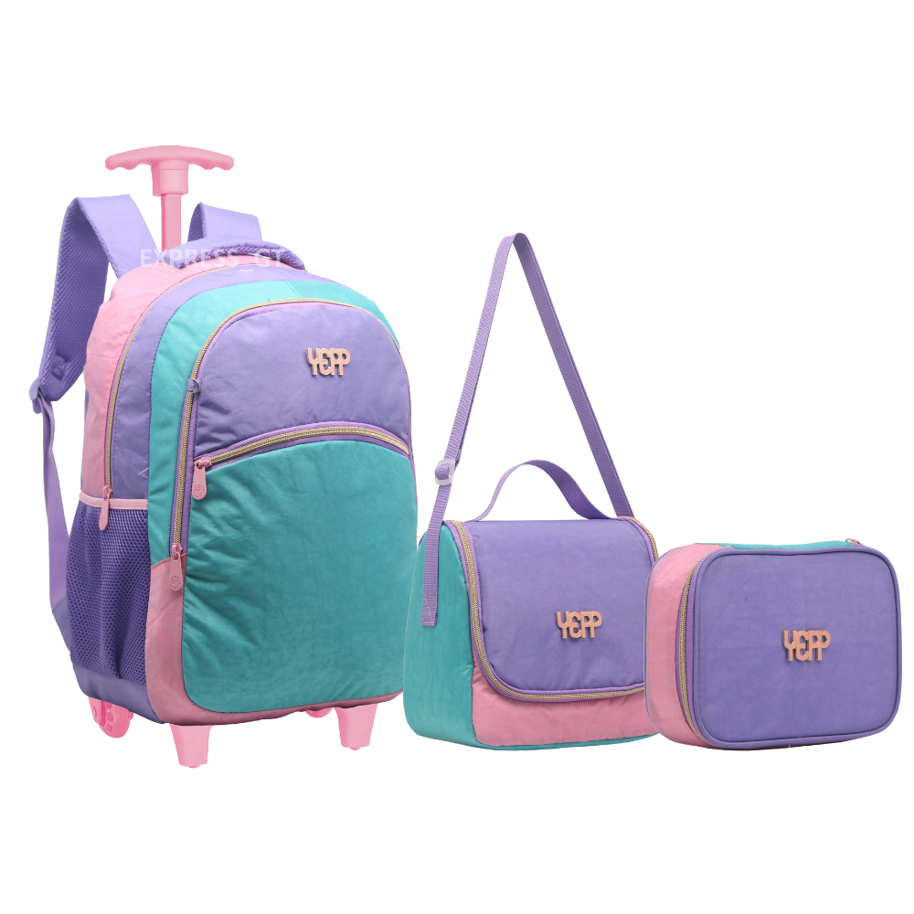 Kit Mochila Infantil Menina Rodinha Escolar Bolsa Feminina Grande Reforçada Com Lancheira Térmica e Estojo Box