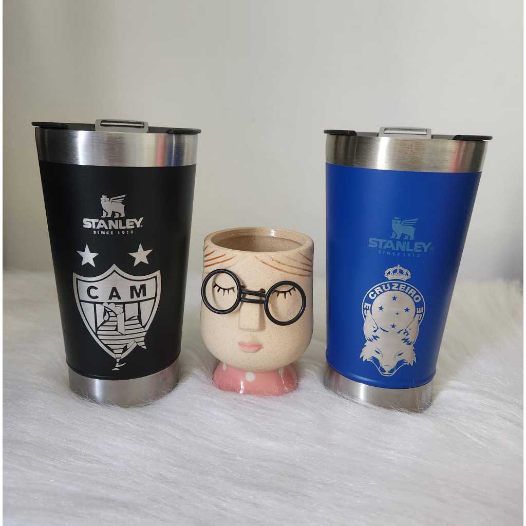 Copo Térmico Stanlei Inox Personalizado Com Seu Time e Nome Tampa e Abridor 473ml Gravado a Laser
