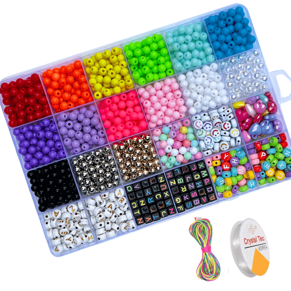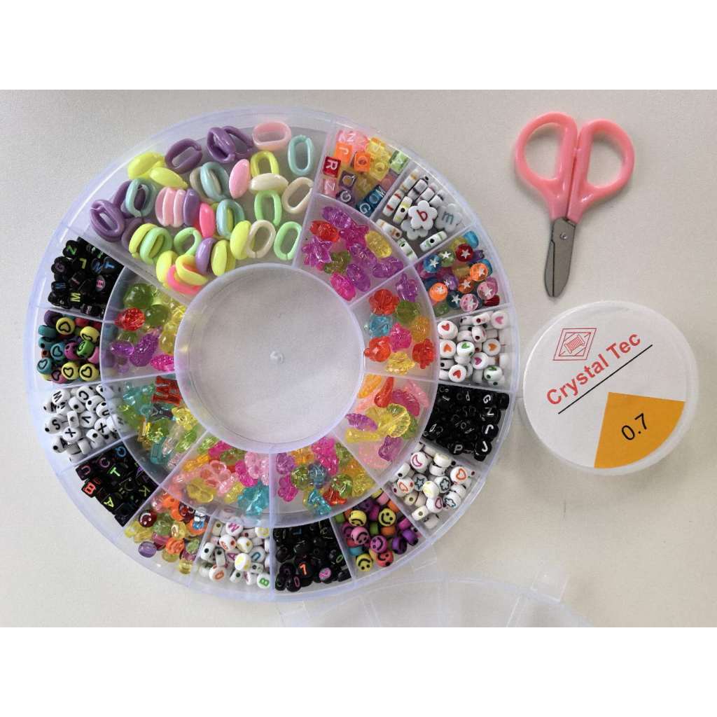 Kit Miçangas Infantil + Fio Silicone Para Fazer Pulseira de Miçanga Colar Miçanga
