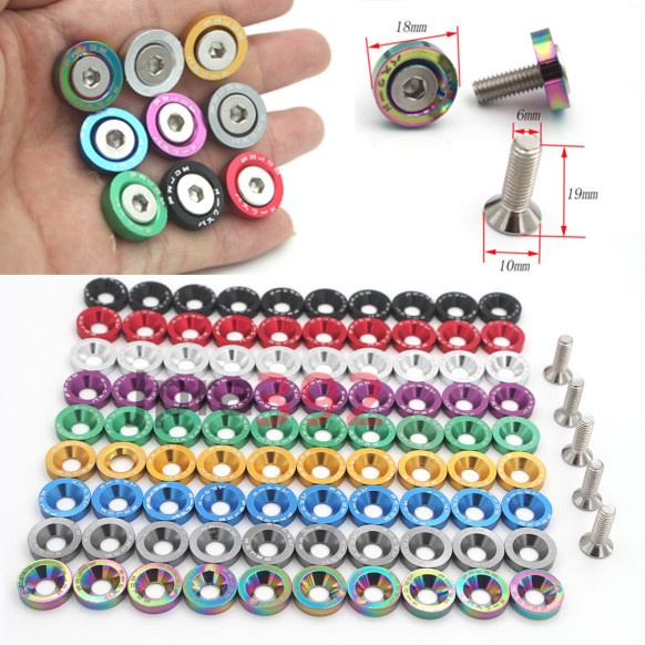 Fender 10pcs/Pack M6 Arruelas De Pára-Lamas Estilo JDM Alumínio E Parafuso Para Junta Honda Civic Integra