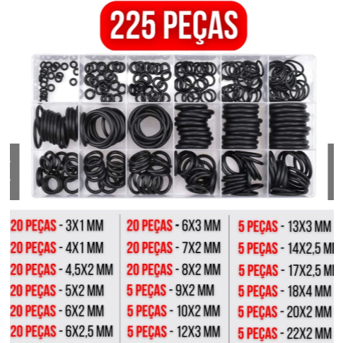 225 Peças Anel Oring De Vedação Borracha Kit Completo