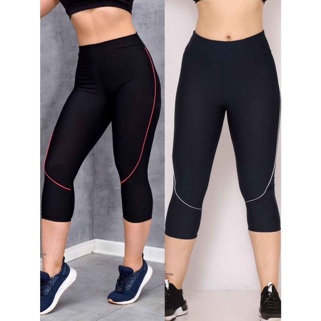 kit 2 Calça Legging Corsário Viés Suplex Elastano Cintura Alta Academia Fitness