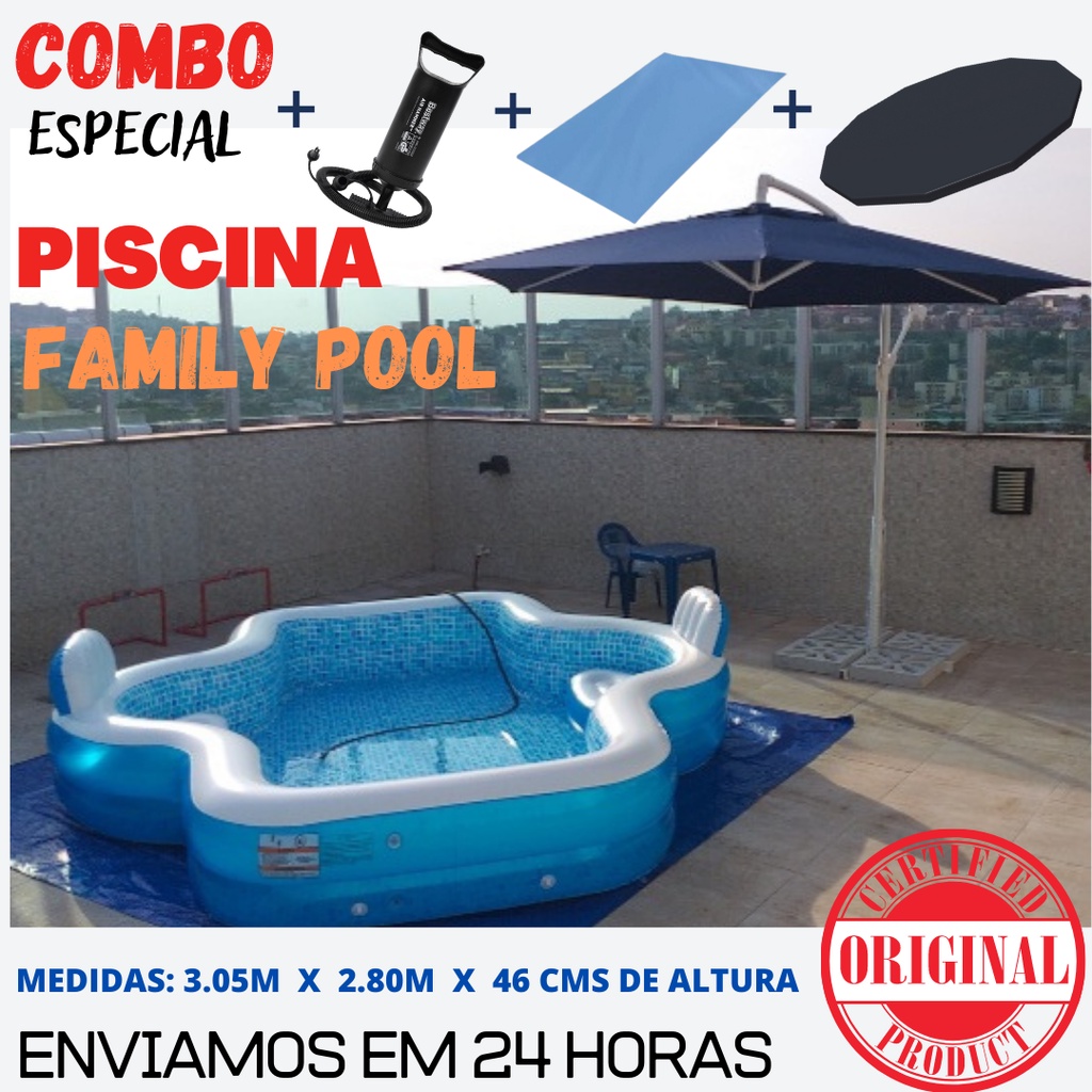 Piscina Premium Especial + Capa + Forro + Bomba de Ar c/ Assentos e Encosto 3.000 Litros - Original
