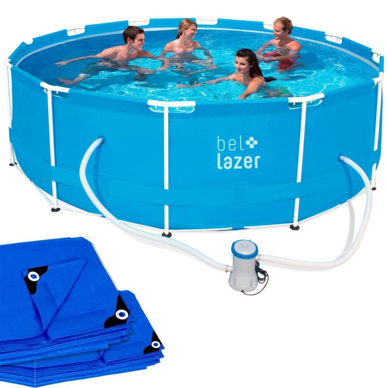Piscina com Armação 10.000 Litros 366 x 100 CM c/ Bomba Filtrante Lona e Capa de Proteção 510200 BE