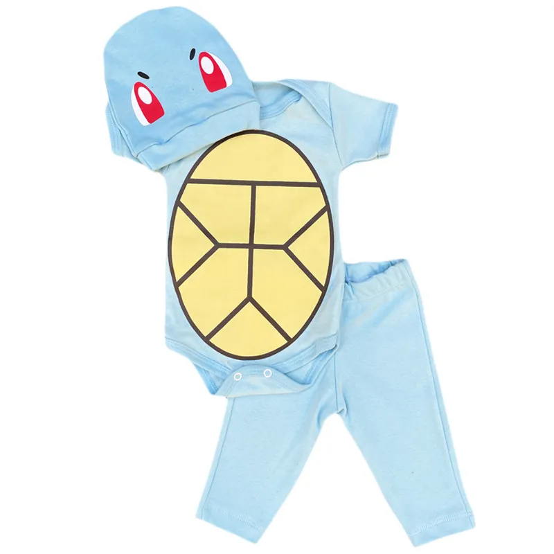 Kit Body e Calça Bebê Temático Mesversário Fantasia Pokemon Squirtle Com Touquinha