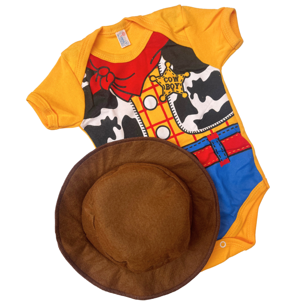 Body e banho de sol de Bebê Temático Menino Woody+Chapéu Promoção (Escolha o seu)
