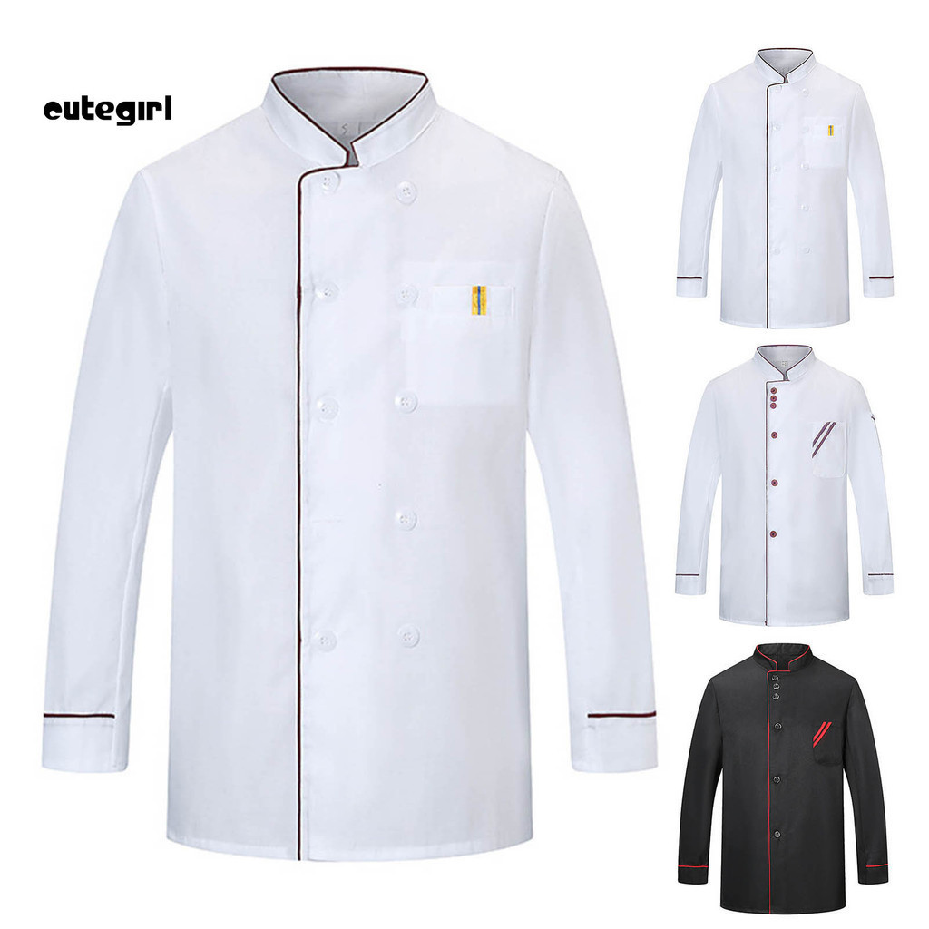 CGM-Stand Collar Manga Longa De Colarinho De Mangas De Bolso De Peito Único Chef Uniforme Feminino Serviço De Homens