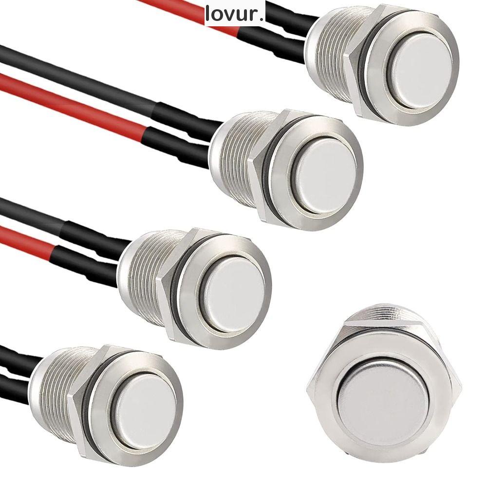 LOVUR Interruptor De Botão De Pressão Momentary Push Button Switch , 12mm Black Shell , Com Pré-Fiação IP65 À Prova D'água 1 Normalmente Aberto