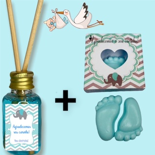 Kit 30 Lembrancinhas Para Chá de Bebê, Maternidade - 15 Caixinhas com Pezinhos + 15 Aromatizadores