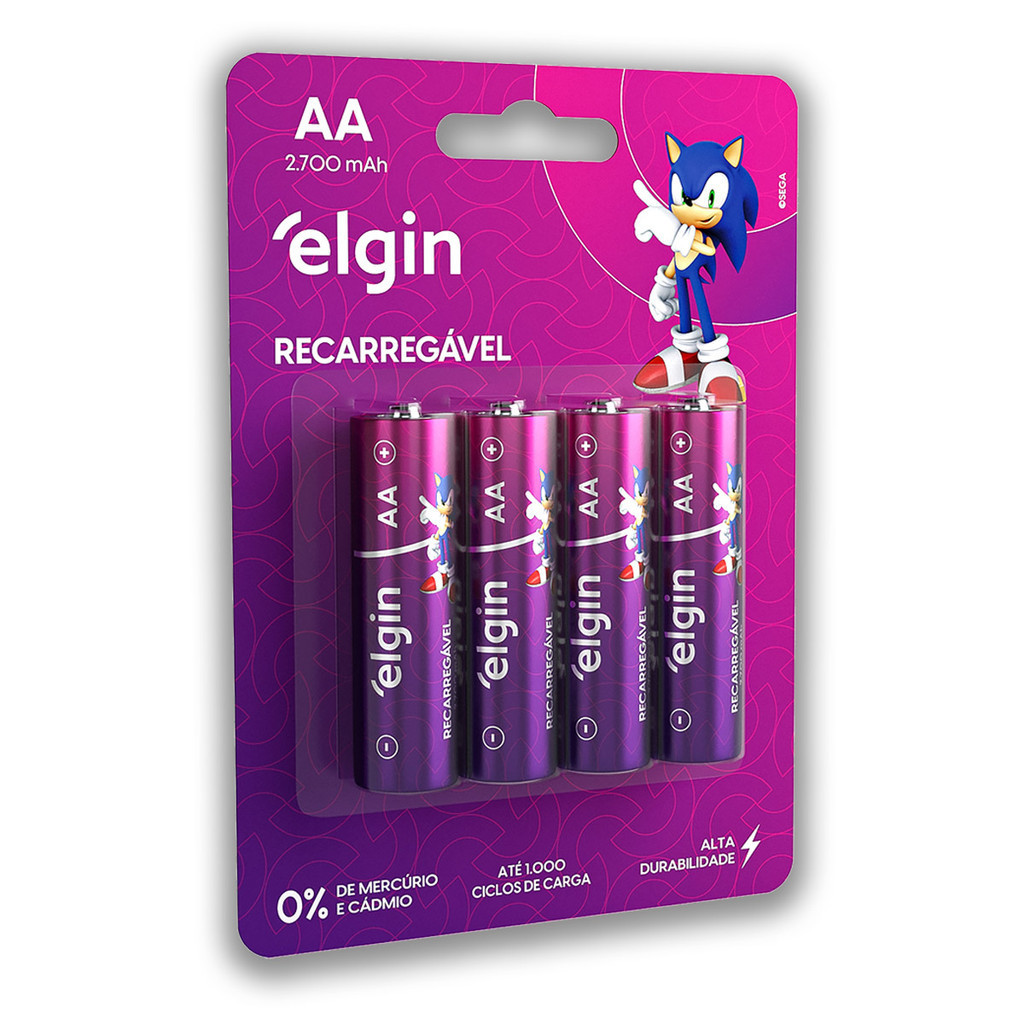 Pilha Recarregavel AA Elgin Bateria 2A 2700mAh Pequena 4 unidades