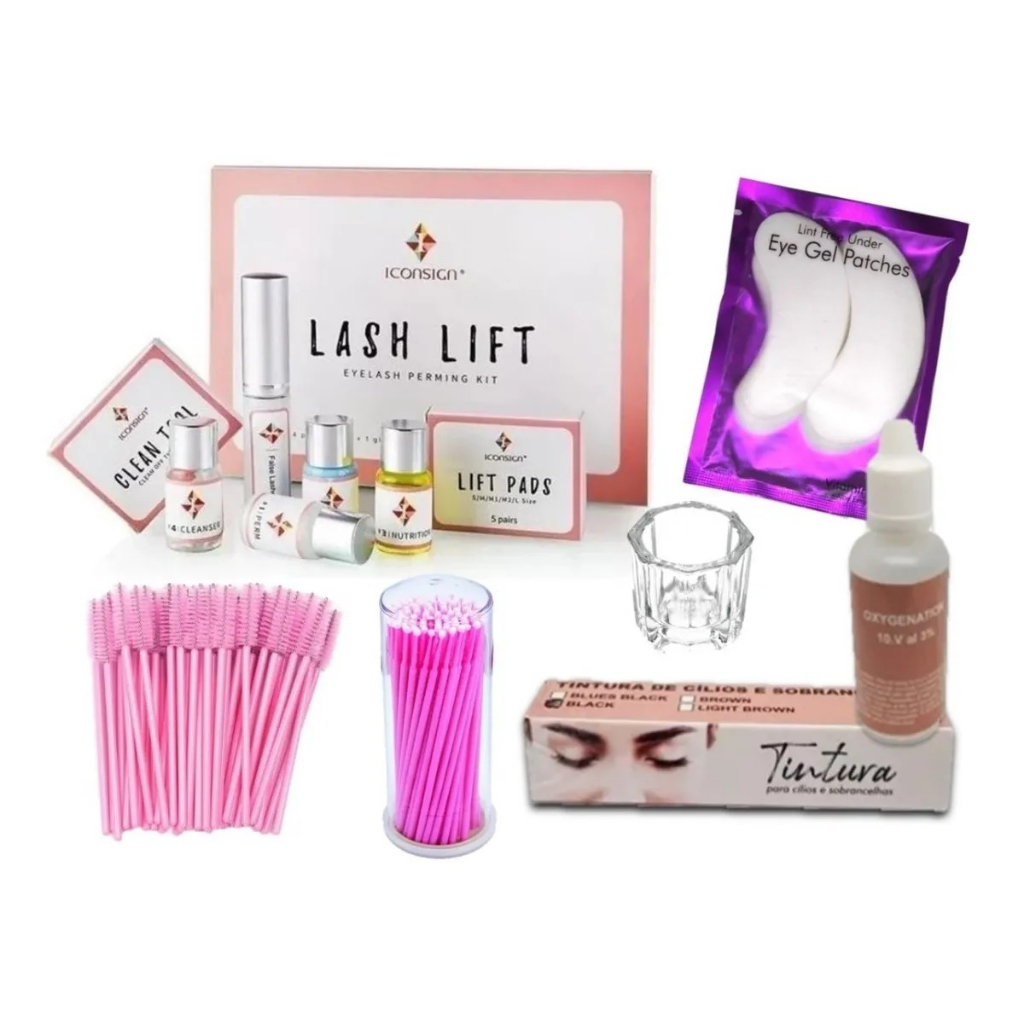 Kit Lash Lifting Com Tintura E Oxidante Permanente De Cílios