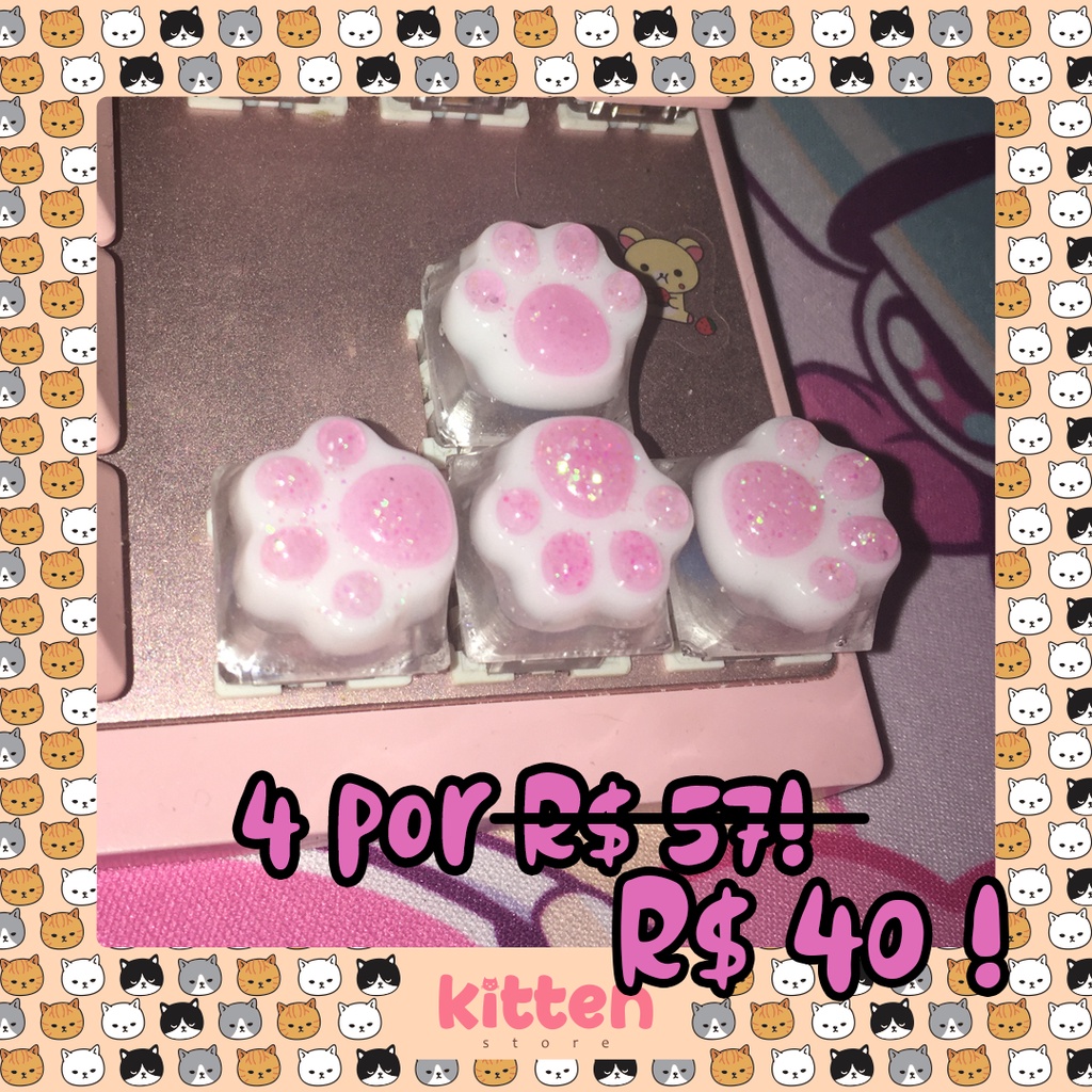 tecla de patinha para teclado mecânico keycap de gatinho/pata de gato setup kawaii fofo - Kitten Store