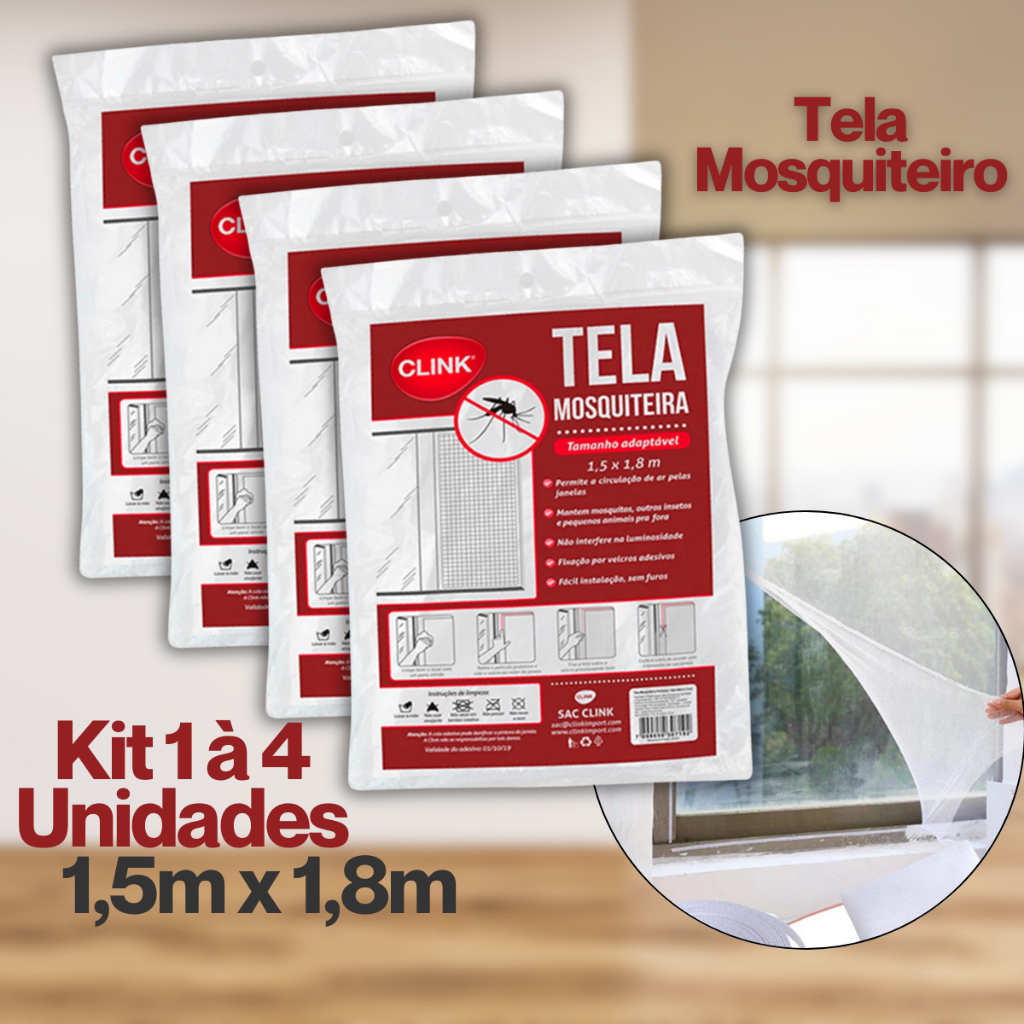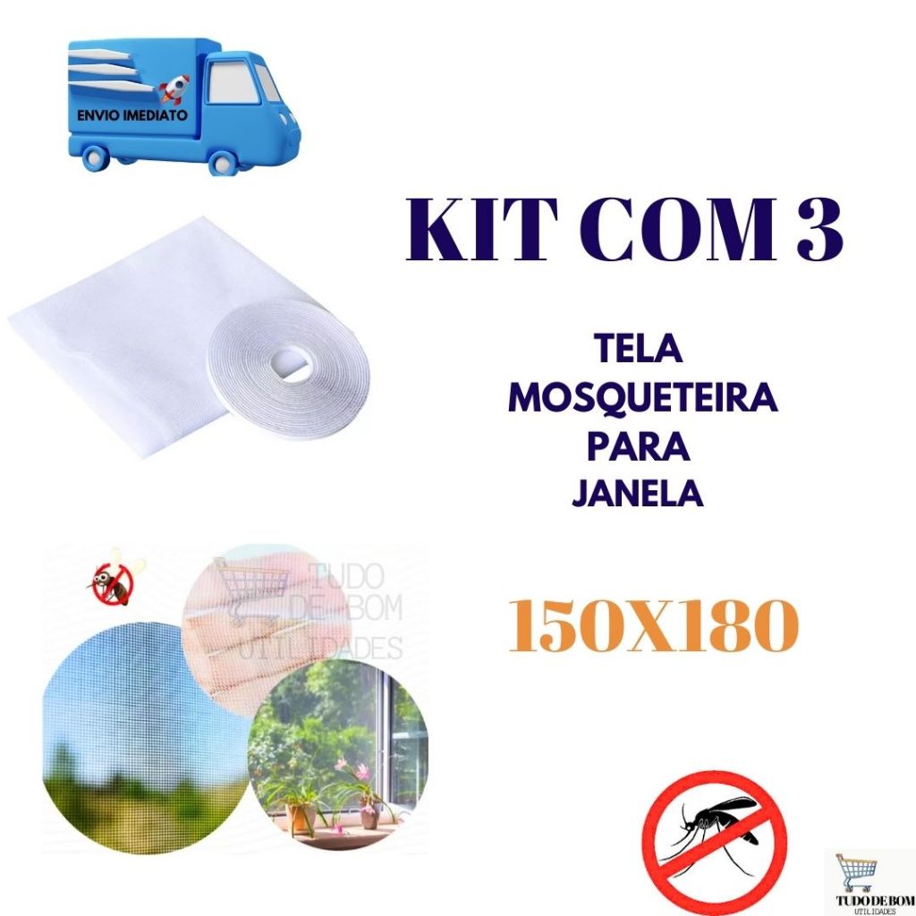 KIT Tela Mosqueteira De Janela 1,5 x 1,3 Com Velcro Autocolante Anti Inseto Pernilongo Muriçoca Dengue Ajustável Removível Fácil Instalação Envio Rápido
