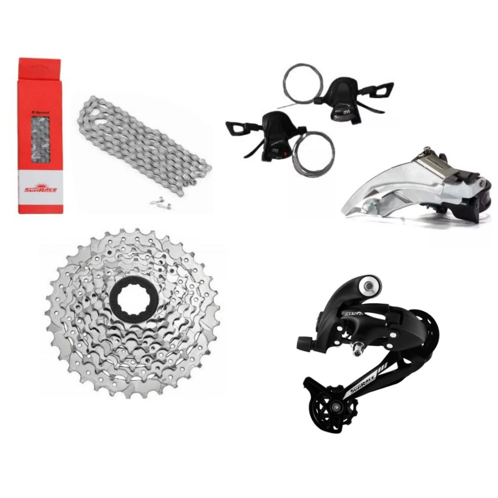 KIT TRANSMISSÃO SUNRACE SR DKM 24V Mtb 3x8v 6 Peças Para Bike