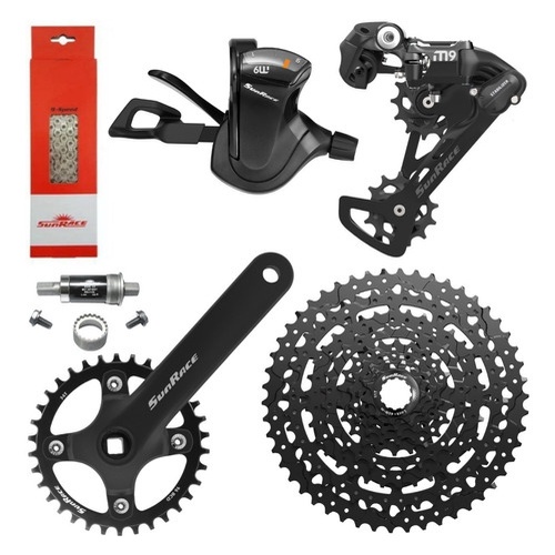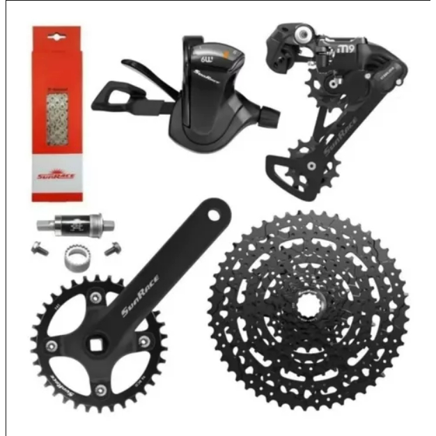 Kit Grupo Transmissão Completa Sunrace M9 1x9 Original Câmbio Traseiro Alavanca K7 11/50d Pedivela Coroa 34t Corrente Bike Bicicleta 6 Peças Single 9v