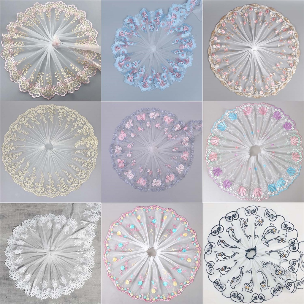 1Y Tecido De Malha Bordado Em Renda Artesanato Boneco Material De Saia