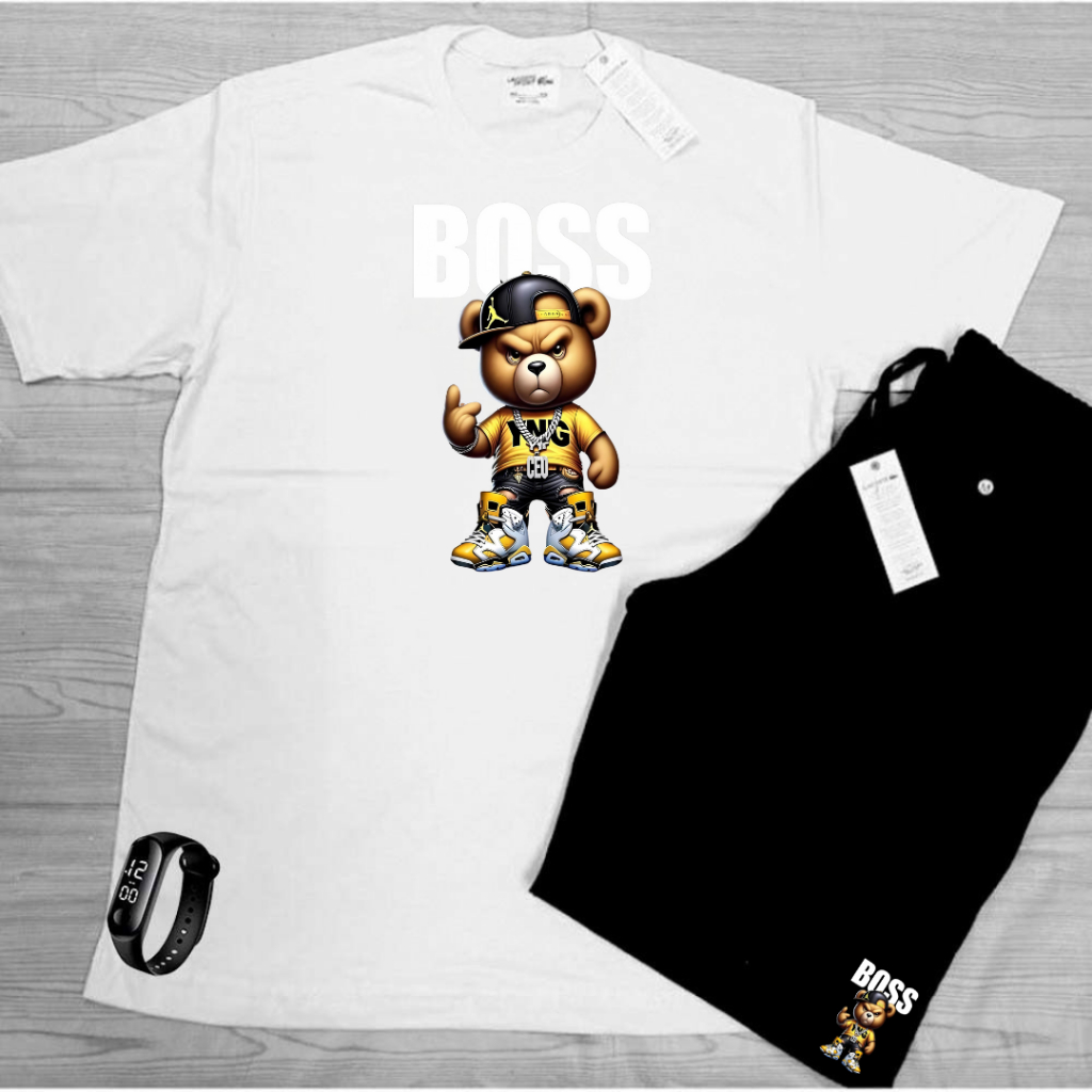 Conjunto Kit camiseta 100% algodão 30,1 bermuda RELOGIO DIGITAL MODA PRAIA URSO B.