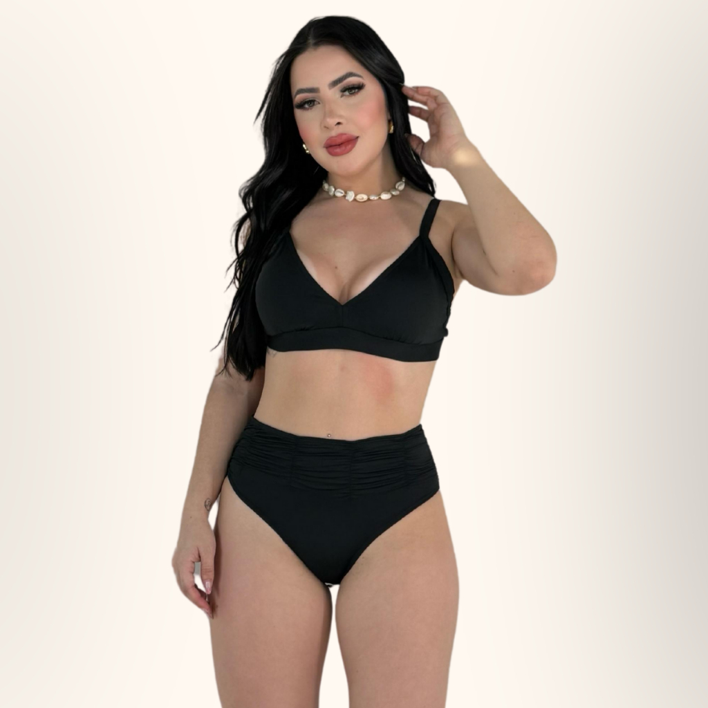 Biquíni Hot Pants Cintura Alta Top Decote V Com Bojo Removível