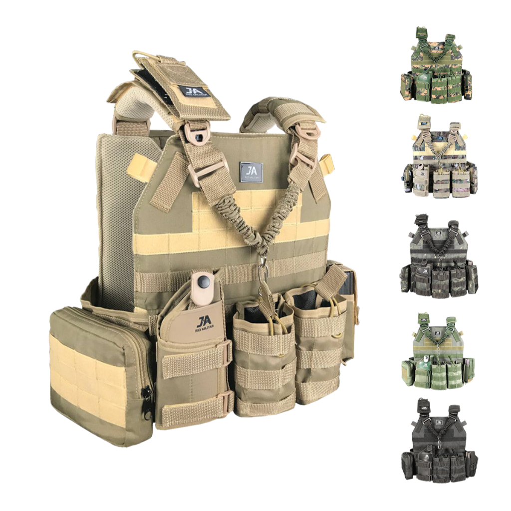 Colete Tático Plate Carrier Modular +9 Peças JA Rio Militar