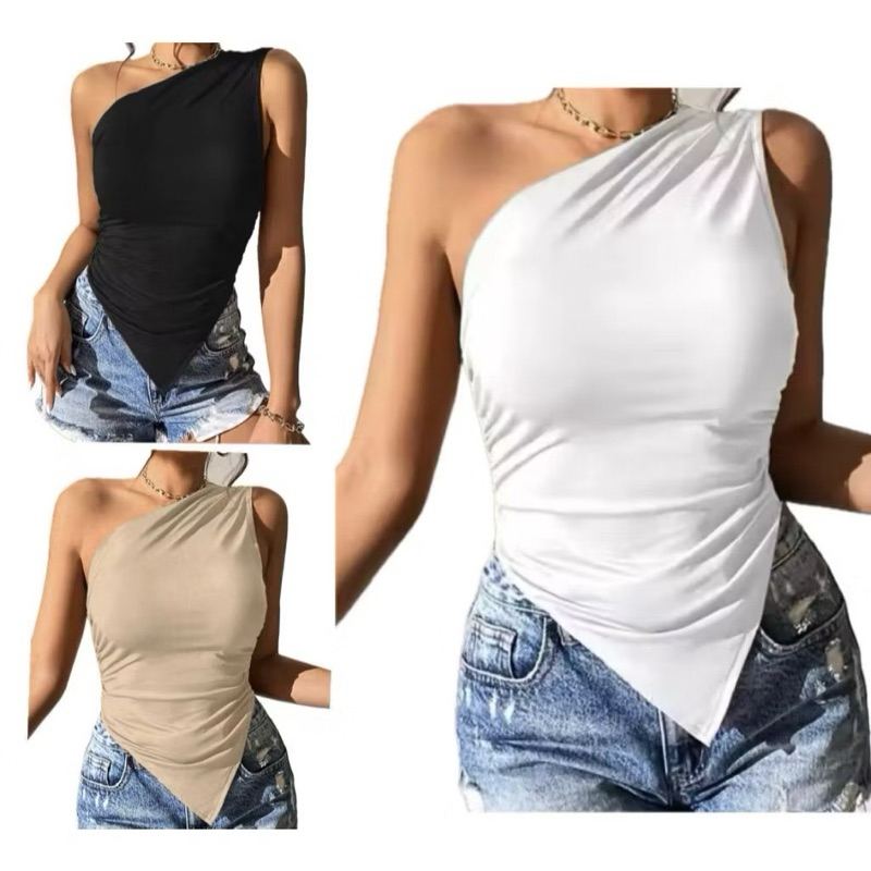 Blusa Feminina Assimétrica Tomara que Caia Um Ombro Canelada Blogueira Elegância e Estilo Moda Gringa