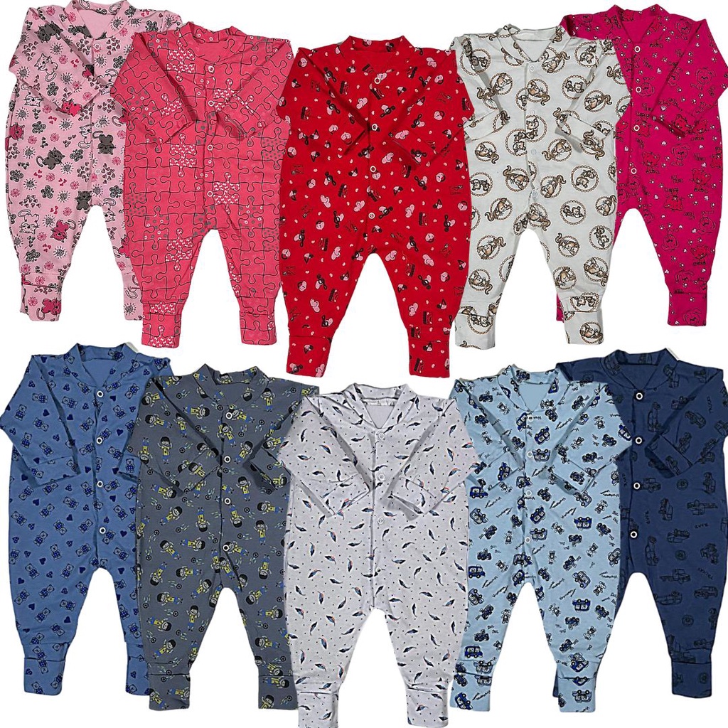 Kit 4 Peças Macacão Bebe Malha Estampado Menina E Menino