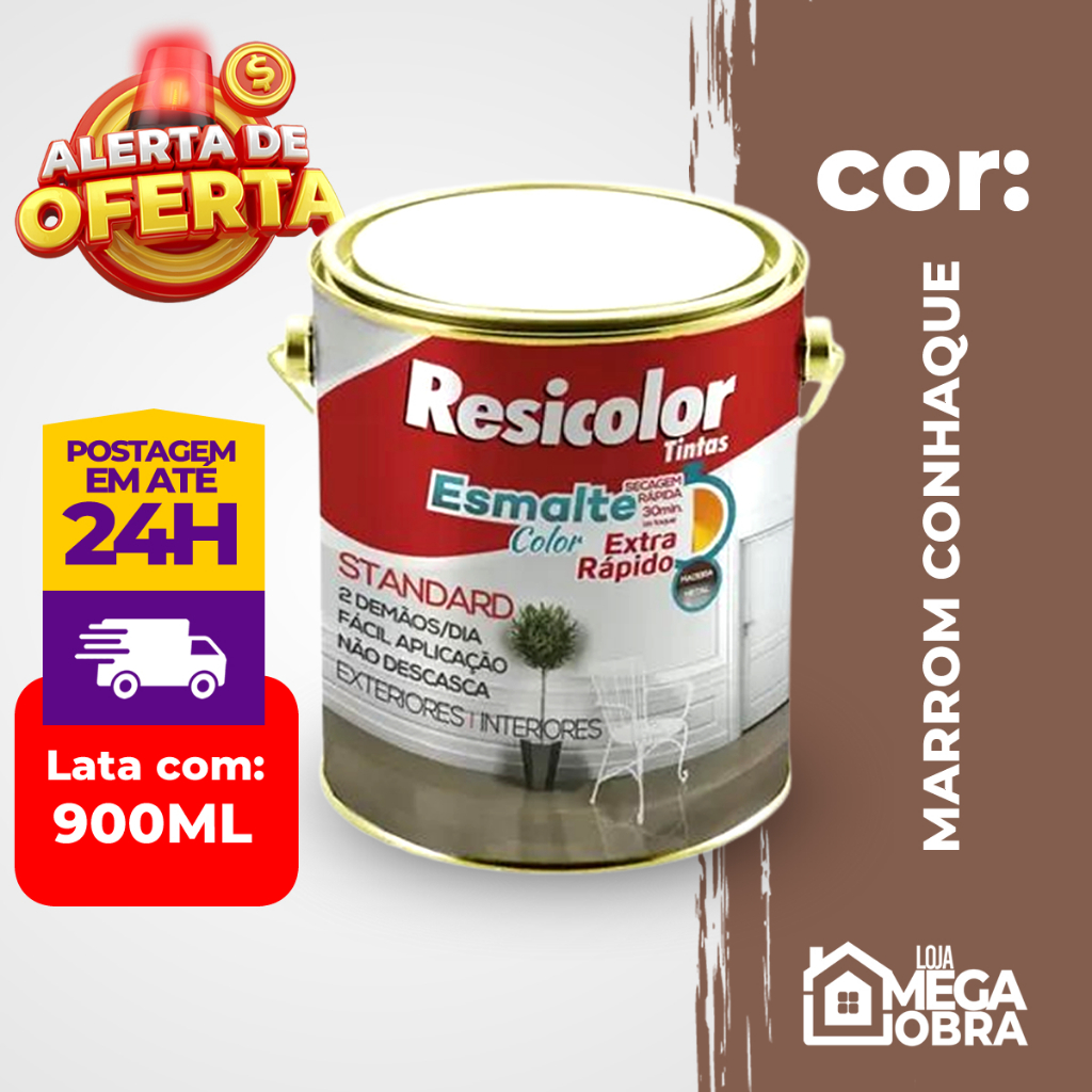 Tinta Esmalte Sintetico Brilho Standard para Madeira Ferro latão Interior e Exterior Marrom Conhaque 900ml Resicolor