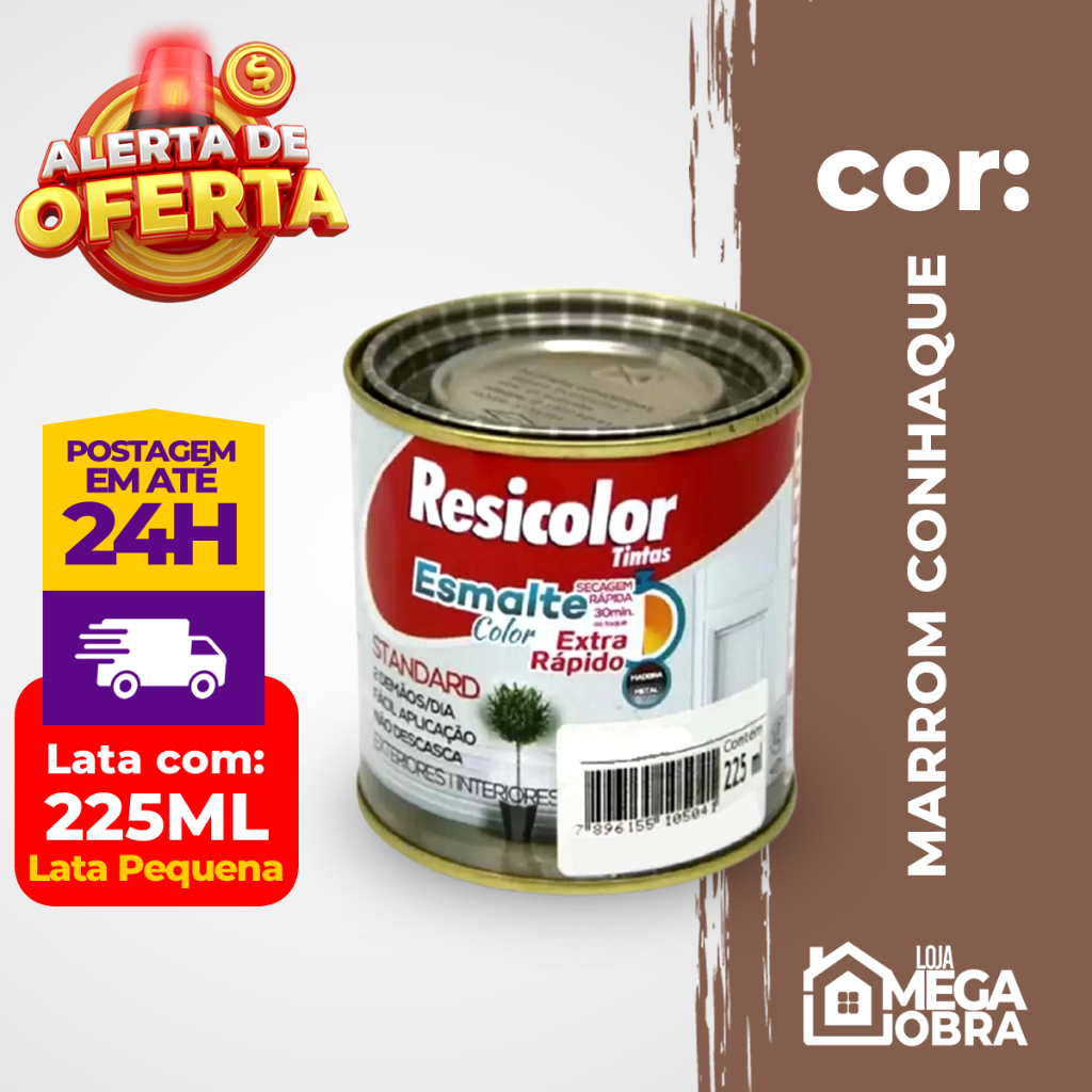 Tinta Esmalte Sintetico Brilho Standard para Madeira Ferro latão Interior e Exterior Cor Marrom Conhaque 225ml Resicolor