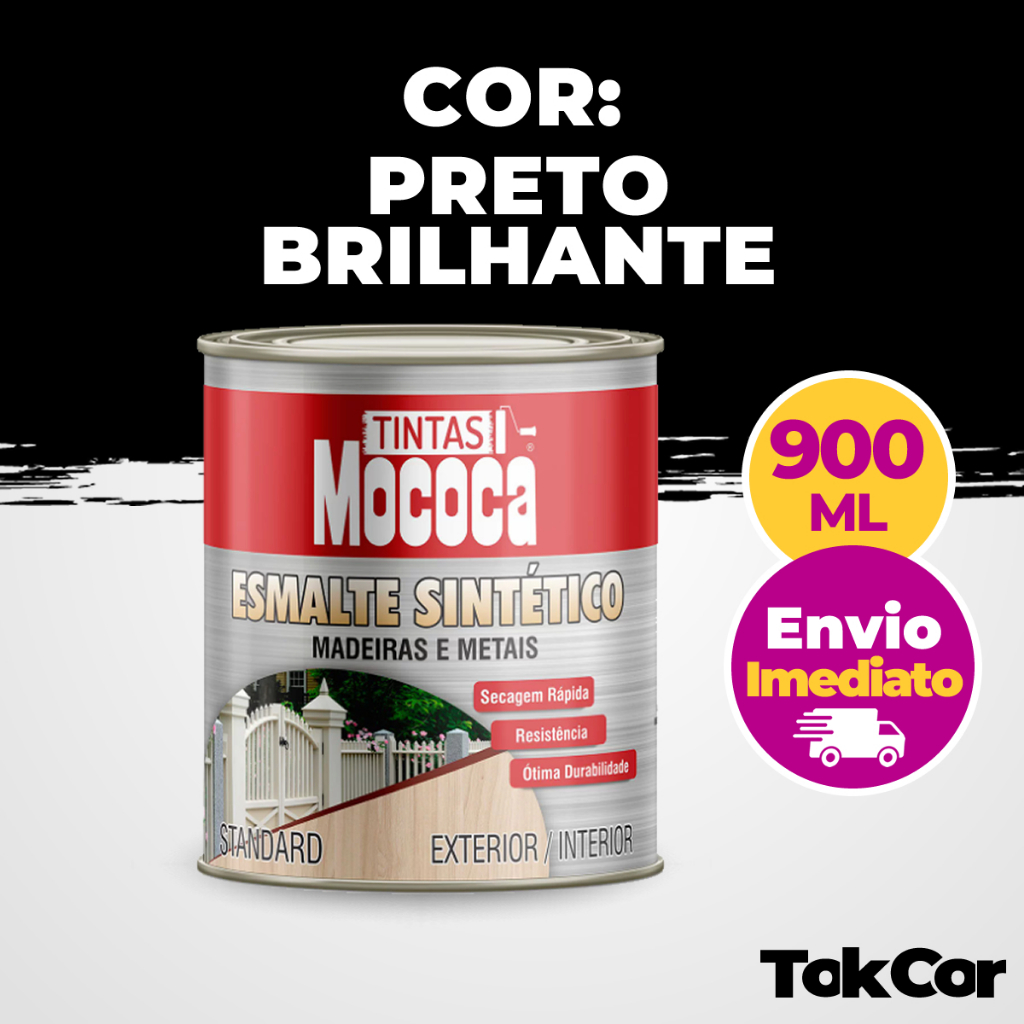 Tinta Esmalte Sintetico Brilhante Standard para Madeira Ferro latão Grade Porta Portão Cerca Mdf Artesanato Interior e Exterior Mococa Cor PRETO 900ML
