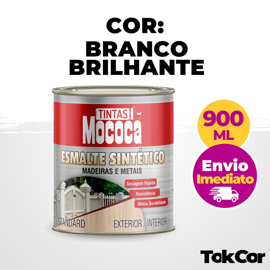 Tinta Esmalte Sintetico Brilhante Standard para Madeira Ferro latão Grade Porta Portão Cerca Mdf Artesanato Interior e Exterior Mococa Cor BRANCO 900ML