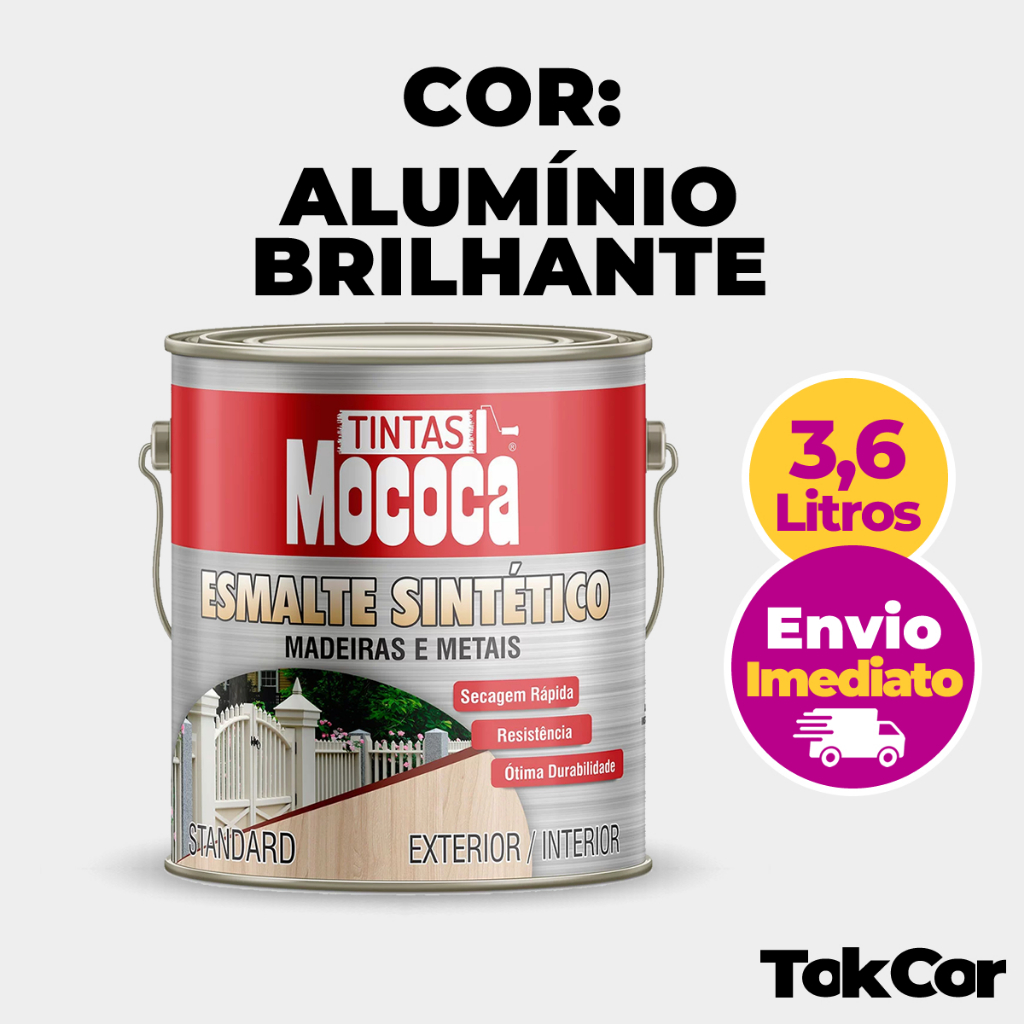 Tinta Esmalte Sintetico Brilhante Standard para Madeira Ferro latão Grade Porta Portão Cerca Mdf Artesanato Interior e Exterior Mococa Cor ALUMINIO 3,6L
