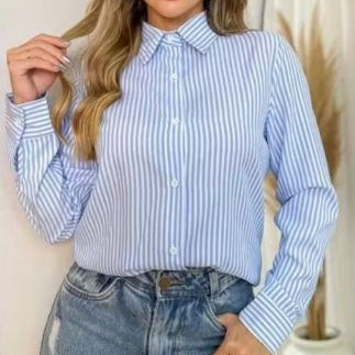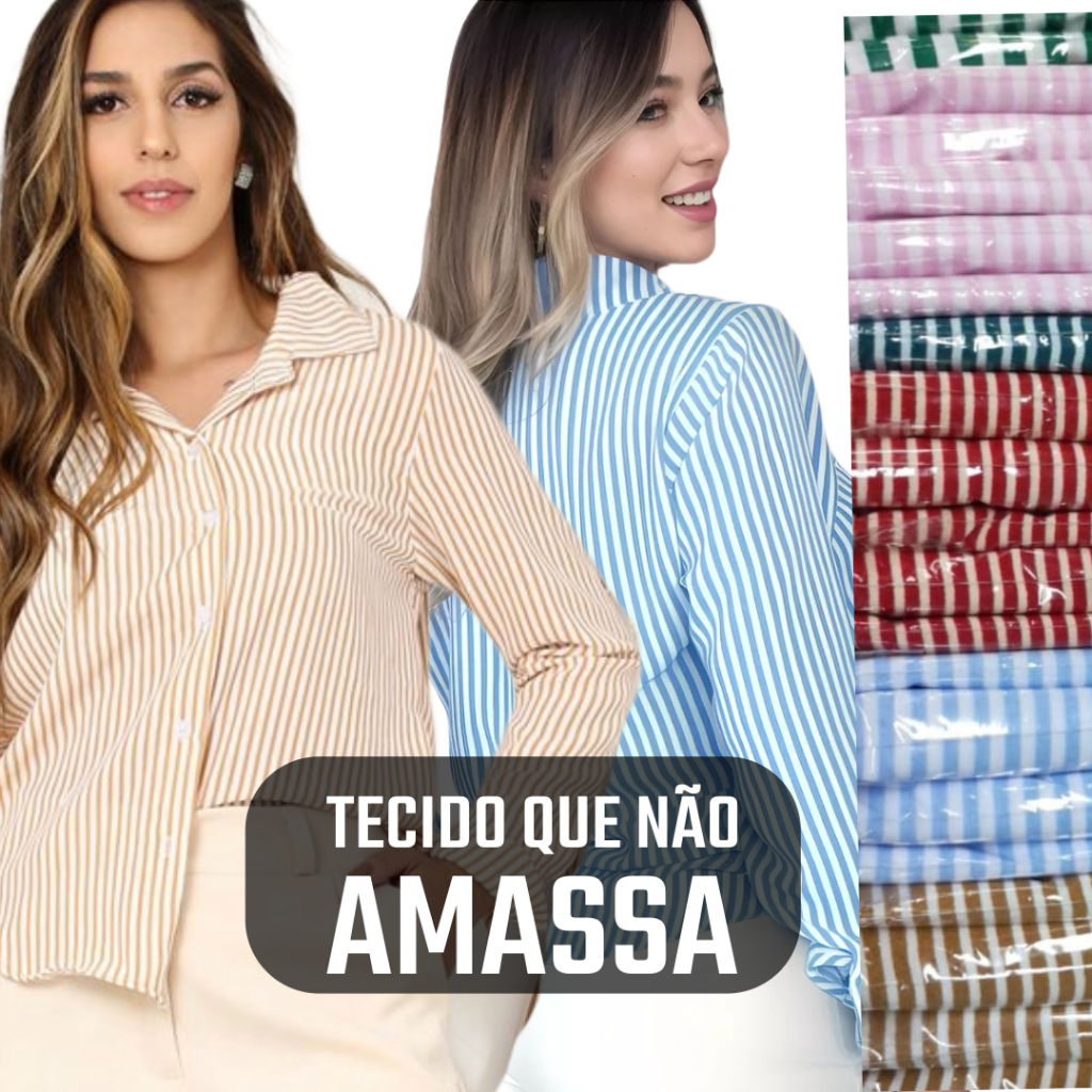 Camisa Social Feminina Listrada Manga Longa – Elegância e Conforto em Risca de Giz