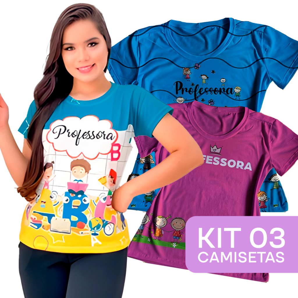 Kit 3 Peças T-shirt Blusa Baby Look Feminina Professora Kit Educação Infantil Profissão