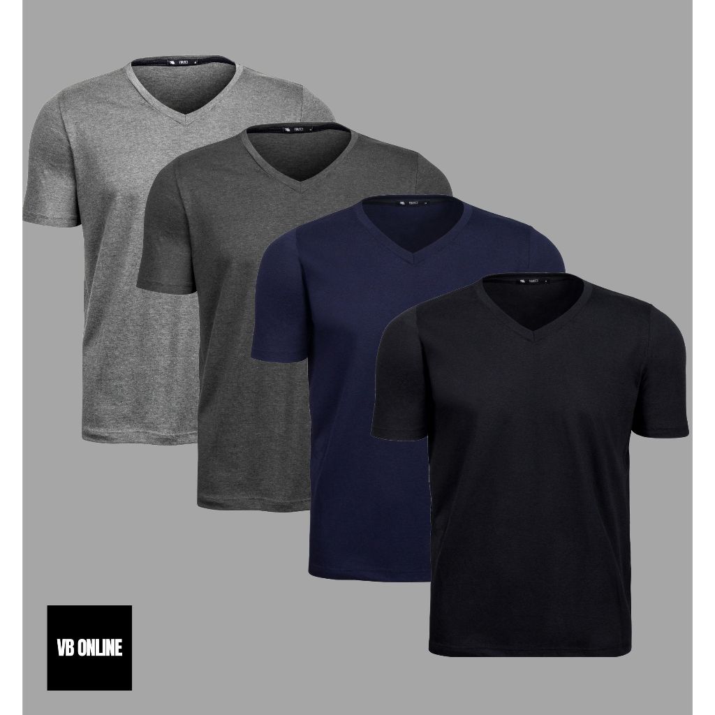 VB ONLINE Kit 4 Camisetas Masculinas Plus Size Gola V Meia Malha Tamanho Grande Do G1 ao G4