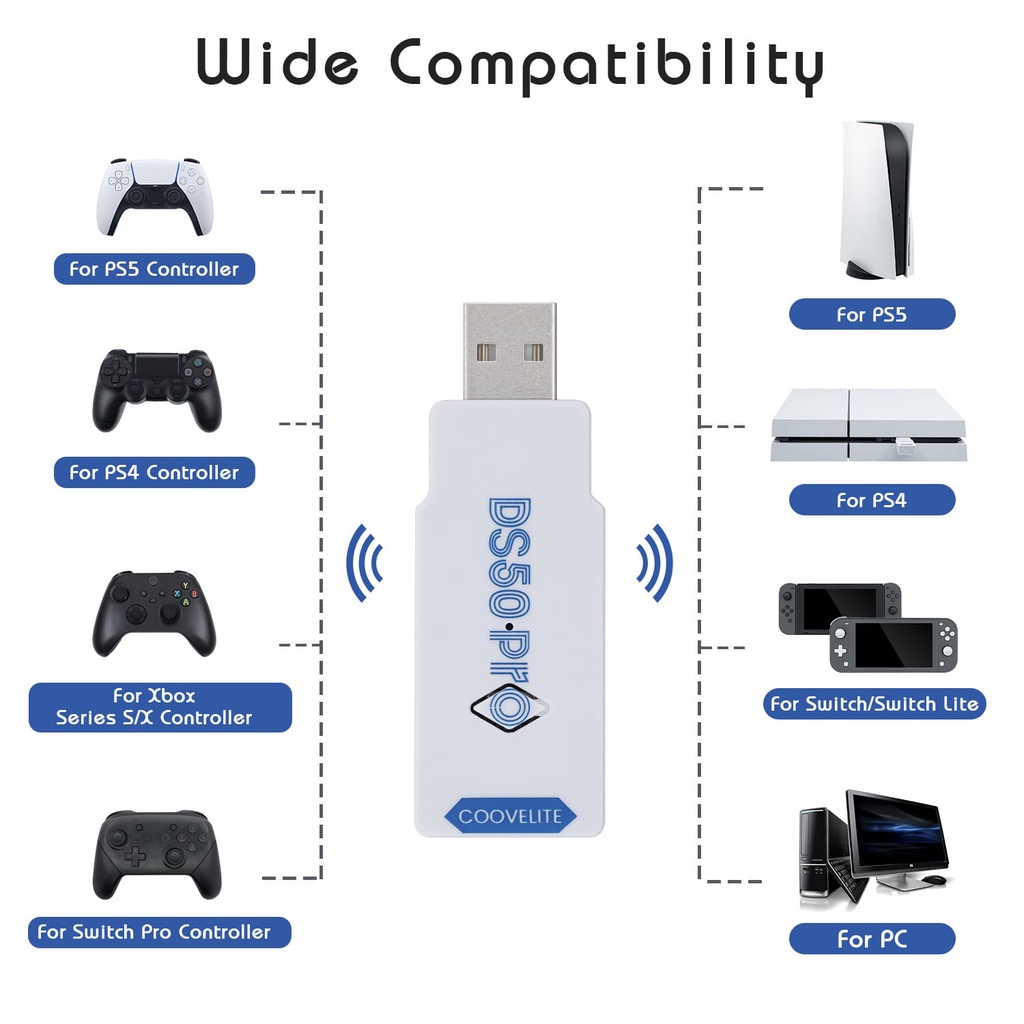 Adaptador Coov DS50 Bluetooth Para Controle de PS5 PS4 Xbox One S Nintendo Switch PC